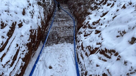 Строители уже пробурили две скважины глубиной 62 м и установили в них два глубинных насоса. Также подрядчик проложил 189 м водопроводных труб и завёз на стройплощадку железобетонные изделия на колодцы и трубы.