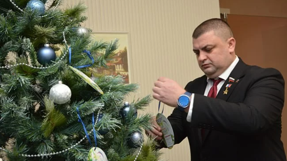 Председатель Воронежской городской Думы, Герой России Андрей Дьяченко, а также его заместитель Олег Черкасов сняли открытки на елочных шарах с елки, размещенной в здании парламента, где дети попросили беговую дорожку, световой стол, эллиптический тренажер и другие подарки.