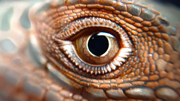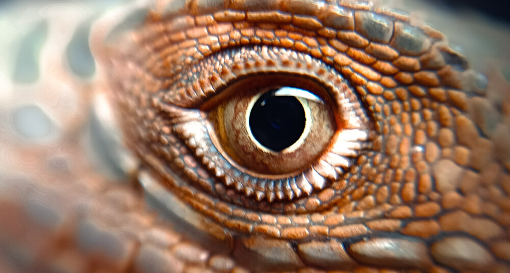 Иначе устроено зрение у позвоночных, например людей и рептилий. Наши глаза — камерного типа (глазные яблоки) — состоят из сферического хрусталика, сетчатки, радужной оболочки и мышц, контролирующих движение. Они также содержат пигментированные структуры — меланосомы, которые, среди прочего, определяют цвет радужки.