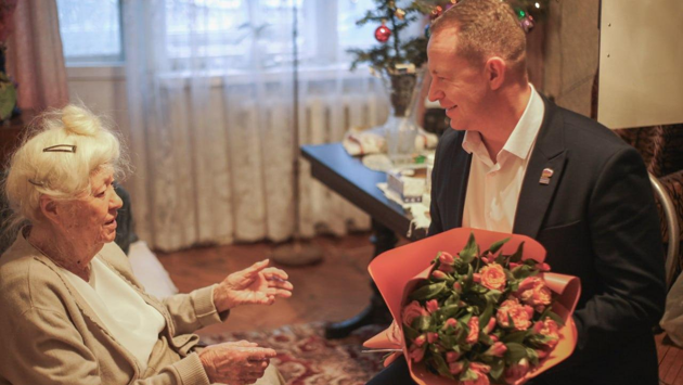 Председатель Совета депутатов городского округа Пушкинский Артем Садула поздравил ветерана труда Маргариту Махоткину с 95-летием