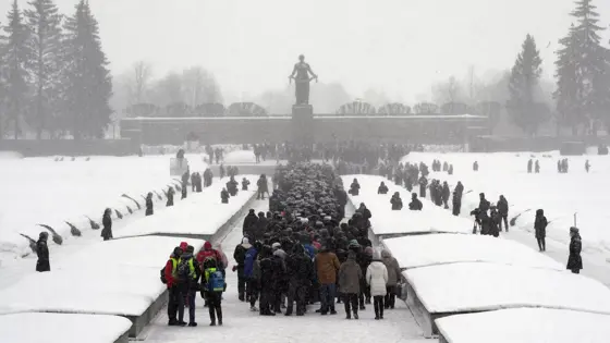 Участники возложили венки на Пискарёвском мемориальном кладбище.