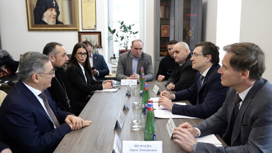 27 января губернатор Нижегородской области Глеб Никитин встретился с представителями армянской и протестантской церквей, которые расположены в архитектурно-культурном комплексе «Квартал всех религий» в районе нижегородского ИТ-кампуса. В официальной встрече также приняли участие главный советник губернатора Нижегородской области по взаимодействию с религиозными организациями Юрий Смородов, министр внутренней региональной и муниципальной политики Нижегородской области Павел Карасев и другие представители правительства региона. В начале визита гости посетили армянский храм «Сурб Аменапркич» (Всеспаситель), с историей которого их познакомил настоятель отец Себеос. «Храм, безусловно, впечатляет! Мы как будто моментально переместились в Армению – настолько аутентичными являются внешний вид и убранство церкви. Храм проектировался в полном соответствии с канонами армянской архитектуры. Так что неудивительно, что сегодня Церковь Всеспасителя стала жемчужиной в уникальном архитектурно-культурном комплексе, получившем название «Квартал религий». Она является точкой притяжения для нижегородцев и многочисленных гостей города», — поделился впечатлениями Глеб Никитин. Губернатор подчеркнул, что армянская община остаётся важным партнёром областного правительства и при решении другой актуальной задачи – создании благоприятной религиозной среды для привлечения в нижегородский регион иностранных переселенцев и студентов. Также участники встречи посетили протестантский храм на улице Шевченко. На встрече с представителями протестантской церкви присутствовали епископ, полномочный представитель начальствующего епископа Российского объединенного Союза христиан веры евангельской (пятидесятников), председатель консультативного совета глав протестантских церквей Нижегородской области Федор Пикин, президент Волго-Вятского объединения христиан адвентистов седьмого дня Дмитрий Булатов и другие представители церкви. «В этом году протестантский храм отметит 35 лет со дня своего посвящения, что, несомненно, станет знаковым событием в религиозной жизни города и области. Для нас это особенно ценно в связи с реализацией, как вы все знаете, чрезвычайно важного для региона проекта — строительства ИT-университета «НЕЙМАРК». Уникальное расположение церкви — в центре будущей студенческой активности — сыграло немаловажную роль в разработке идеи ее интеграции в концепцию создания благоприятной религиозной среды будущих слушателей университета», — добавил Глеб Никитин. На встрече с представителями протестантской церкви губернатор обсудил их вклад в укрепление традиционных духовно-нравственных ценностей, составляющих общую основу для всех основных религий Нижегородской области. Особое внимание было уделено поддержке института семьи и многодетных родителей. Представители церквей подтвердили готовность активно участвовать в этой работе, в том числе оказывать поддержку семьям иностранных переселенцев соответствующих вероисповеданий и содействовать скорейшей социальной и культурной адаптации их детей.