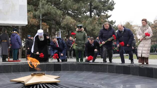 Ростовская область, 23 февраля 2026, DON24.RU. Донские власти вместе с военнослужащими, ветеранами и духовенством возложили цветы к Вечному огню у мемориального комплекса «Павшим воинам» в сквере им. Фрунзе в Ростове. Об этом сообщает губернатор Ростовской области Юрий Слюсарь. «Под отсчет метронома почтили минутой молчания память тех, кто отдал свою жизнь за свободу и независимость Отечества. Церемония завершилась торжественным маршем роты почетного караула и военного духового оркестра Южного военного округа», – пишет глава региона в своих соцсетях. Ранее в Ростове отметили годовщину вывода советских войск из Афганистана. Последним погибшим бойцом советской армии был уроженец Донецка Ростовской области.