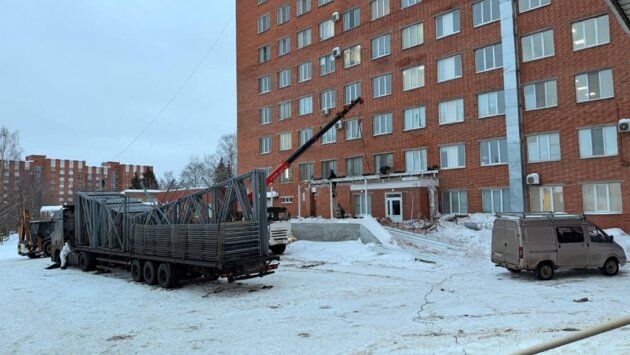 В клинической больнице № 6 имени Г. А. Захарьина идет установка модульной конструкции стационара скорой медицинской помощи.