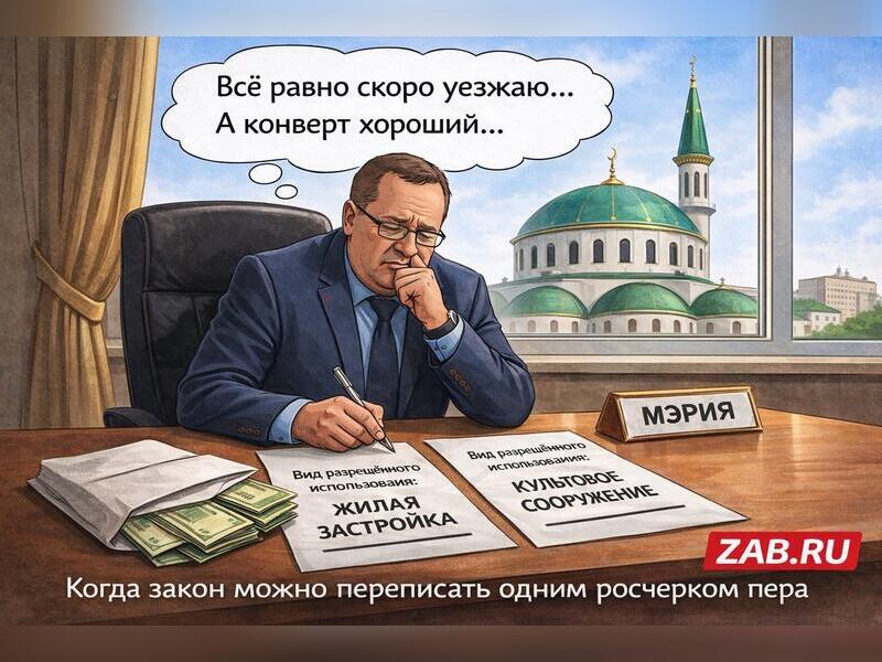 Согласно документу, 26 февраля 2026 года в комитет поступило заявление от Централизованной религиозной организации «Духовное управление мусульман Забайкальского края (Забайкальский муфтият» с просьбой разрешить условно разрешённый вид использования земельного участка для религиозного назначения, что открывает путь для строительства мечети, молельного дома, религиозных зданий, жилья для духовных лиц, паломнических объектов и религиозных школ на участке площадью почти 3 гектара в зоне малоэтажной жилой застройки.
