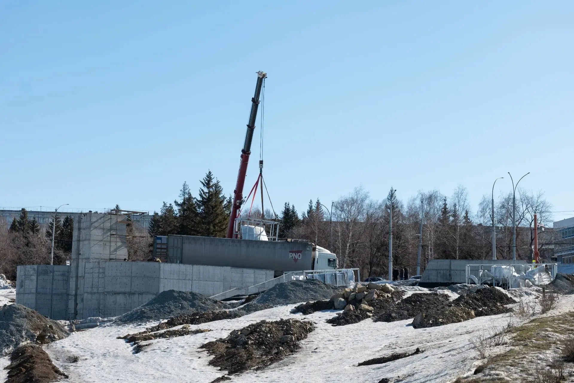 Там уже готовы монолитный железобетонный постамент и подпорные стенки, сделана лестница, идёт монтаж освещения, сетей связи, благоустраивают территорию вокруг.