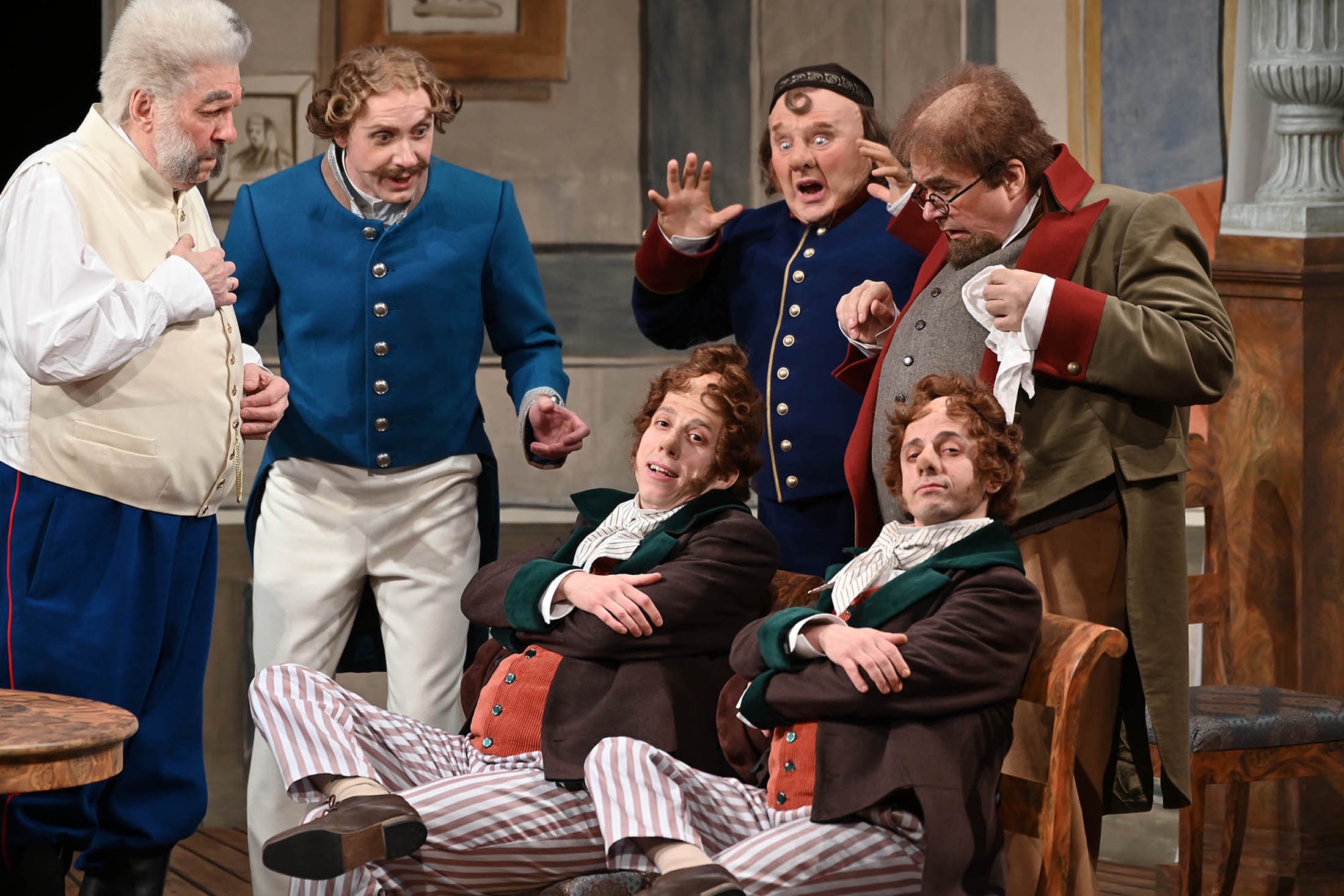 Информационных поводов для такого разножанрового великолепия афиши было достаточно - московские гастроли и весь петербургский сезон посвятили сразу трем юбилейным датам: 80-летию президента Александринского театра Валерия Фокина, 270-летию Александринского театра и 190-летию премьерного показа пьесы Гоголя "Ревизор", впервые поставленной именно на Александринской сцене в апреле 1836 года. Гастрольные мизансцены нанизывают и другие числа с обстоятельствами, но основные уже названы.