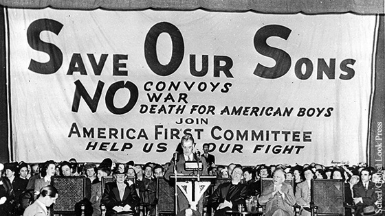 Однако в значительной большей степени, чем с Гардингом и Вильсоном, лозунг «Америка прежде всего» связан с одноименным комитетом, появившимся в сентябре 1940 года. Цель его была такой же, какую Вильсон ставил перед собой на первом сроке – ни в коем случае не допустить втягивания США в мировую бойню. Только росла эта политическая установка уже не сверху, а снизу – закоперщиками выступили студенты, не имевшие желания воевать на фронтах где-нибудь в Европе.