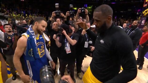 Звездный форвард «озерников» Леброн Джеймс после завершения противостояния тепло поприветствовал многолетних лидеров соперника Дрэймонда Грина и Стефа Карри.
