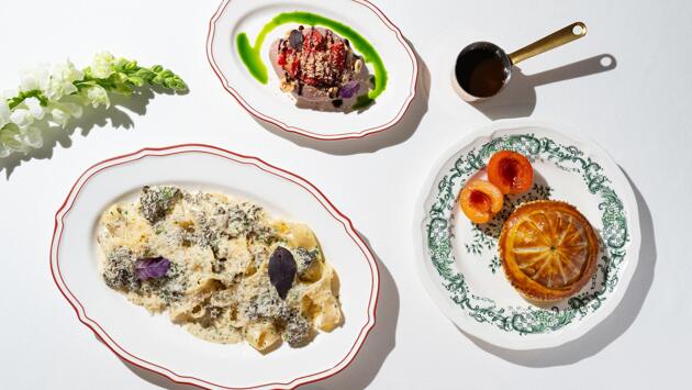 Не секрет, что один из гастрономических секретов — это сочетать несочетаемое. Так, щёчки дальневосточного тунца сложно представить рядом с абрикосами: на деле же это вполне гармоничный дуэт с нежными отношениями. Сахалинский гребешок тоже абсолютно неприхотлив, однако муршмула и соус из дыни — не самые очевидные компаньоны для него (как бы не так!). Мягкая страчателла с персиками — классика жанра, но хрустящие чипсы из семечек придают союзу драйва.