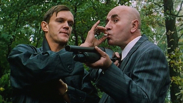 И тогда Оленев на улице стреляет ближайшему другу Могилева по ногам. Именно по ногам, чтобы он попал в больницу. А сам гримируется под бомжа, причем сбривает с груди волосы и клеит их себе на лицо. Надевает длинный засаленный парик, подрисовывает синяки под глазами, и трое суток живет в больнице, где лежит друг Могилева: сначала на трубах теплотрассы, потом — в приемном покое, куда его пускают поспать медсестры. И его никто не опознает! В том числе охрана Могилева, когда тот наконец-то приезжает навестить своего друга.