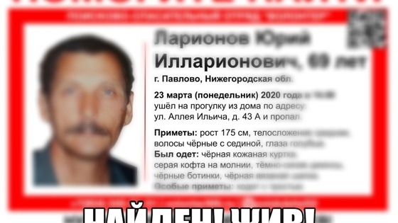 Пенсионер Юрий Ларионов найден живым в Павлове