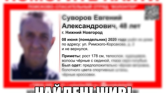 Пропавший в Нижнем Новгороде Евгений Суворов найден живым