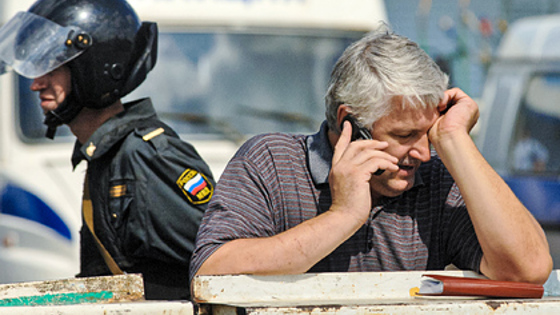 Сотрудник правоохранительных органов в оцеплении места взрыва на Черкизовском рынке. 21 августа 2006 года. Фото: Илья Питалев / Коммерсантъ