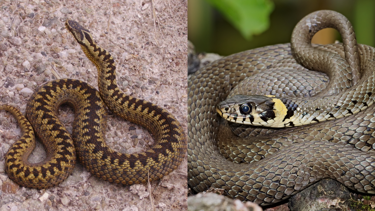 На фото слева — гадюка, справа — уж