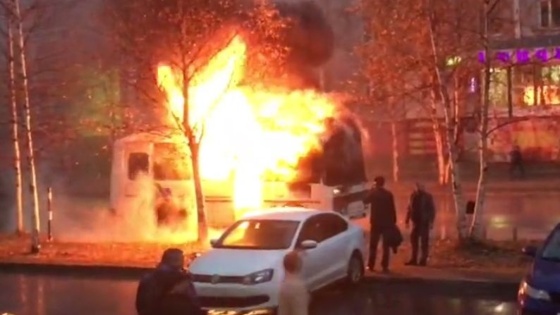 Видео: vk.com/osurgut/Николай Логинов. Очевидцы засняли на видео горящий автобус в городе Сургут Сургутского районе Ханты-Мансийского автономного округа. Как пишет osurgut.com, это ЧП произошло на улице Лермонтова. Пламя охватило большую часть транспортного средства. Причины произошедшего пока неизвестны.