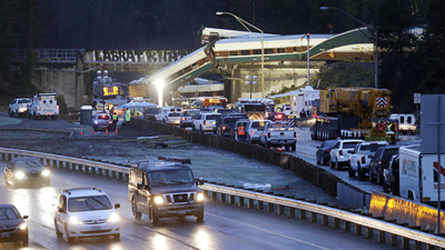 Авария произошла после крутого поворота и заезда на надземный мост. Минимум два вагона рухнули на автотрассу I-5, парализовав движение транспорта по самой нагруженной дороге северо-запада США, ведущей от Канады до Мексики. Только в южном направлении по этому шоссе ездит до 60 тыс. автомобилей в день, уточнило управление транспорта города Такома, в 64 км от которого произошла авария.