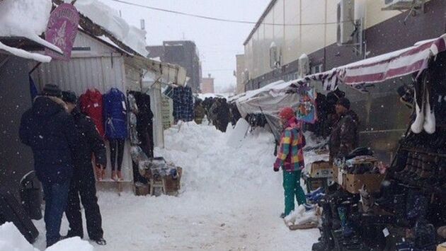 Снег сошел на торговые палатки на рынке в Удмуртии