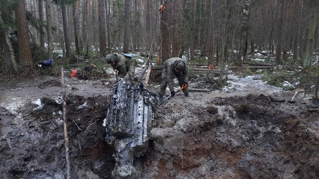 Бойцы ЗВО извлекли из земли часть штурмовика, оборонявшего Ленинград