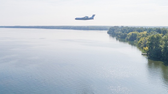 Нижегородский фотограф заснял, как самолеты заправляются водой для тушения лесных пожаров