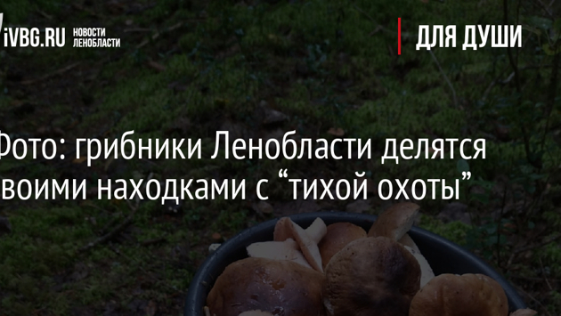 Любители «тихой охоты» активно делиться в соцсетях фотографиями своего внушительного грибного улова. О своих успехах грибники рассказывают в паблике «Грибы и Грибники СПб» во «ВКонтакте». Кингисепский район. Фото: Евгений Барташов. Лужский район. Фото: Светлана Белых. Кингисеппский район. Фото: Ирина Митяшина. Выборгский район. Фото: Любовь Андреева. Всеволожский район. Фото: Игорь Жуковский.
