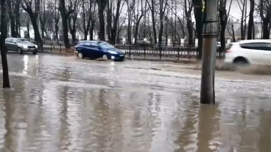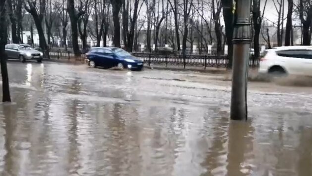В Кирове снова затопило Октябрьский проспект в районе танка