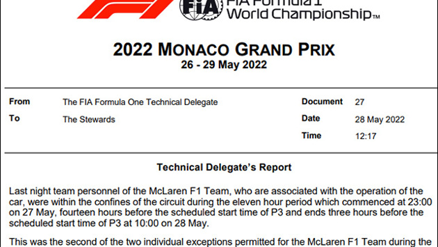В ночь на субботу команда нарушила правило комендантского часа – её сотрудники, непосредственно связанные с обслуживанием машин, находились на трассе в период с 23:00 пятницы до 10:00 субботы. Механики McLaren восстанавливали машину Даниэля Риккардо, пострадавшую в пятницу из-за аварии. Для McLaren это второе нарушение из двух допустимых, никаких санкций за это не последует.
