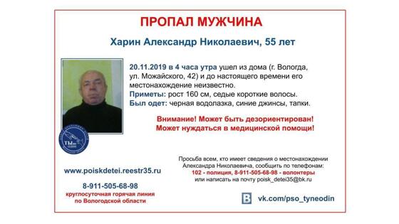 Граждан, у которых есть информация о пропавших, просят сообщить в полицию либо волонтерам из поисково-спасательного отряда «Ты не один» (8-911-505-68-98). 55-летний Александр Харин ушел из дома на ул. Можайского, 42, еще 20 ноября в 04.00. До настоящего времени его местонахождение неизвестно. Приметы: рост 160 см, седые короткие волосы. Он был одет в синие джинсы, черную водолазку и тапки. Известно, что он может быть дезориентирован и нуждается в медпомощи. Второй пропавший - Денис Столяров 34 лет - последний раз выходил на связь 22 ноября. Сообщается, что он проживал в областной столице. У него русые волосы, рост - 170 см. Есть большая татуировка на правом плече. Одет был в темно-синие джинсы, черную блестящую короткую куртку, темно-синюю шапку, на ногах коричневые ботинки.