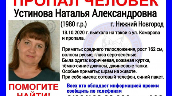 40-летняя Наталья Устинова пропала в Нижнем Новгороде
