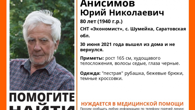 ВСаратове добровольцы иполиция разыскивают пропавшего без вести 80-летнего Юрия Анисимова. Сообщение обэтом сегодня, 30июня, появилось вгруппе регионального поискового отряда «Лиза Алерт» ВКонтакте.
