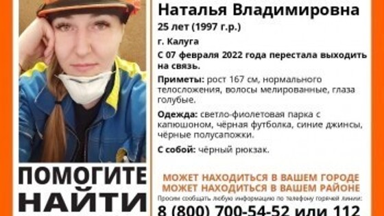 Поисково-спасательный отряд "ЛизаАлерт" ведет поиски 25-летней Аксеновой Натальи Владимировны. С 7 февраля она перестала выходить на связь Приметы: рост 167 см, нормального телосложения, волосы с мелированием, глаза голубые. Одежда: светло-фиолетовая парка с капюшоном, черная футболка, синие джинсы, черные полусапожки. С собой: черный рюкзак. Всех, кому что-либо известно о местонахождении Аксеновой Натальи, просим позвонить по телефону 8-800-700-54-52 (звонок бесплатный).