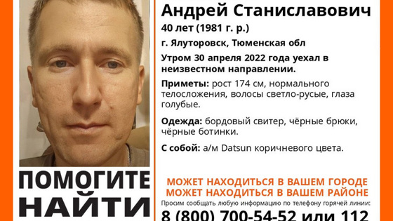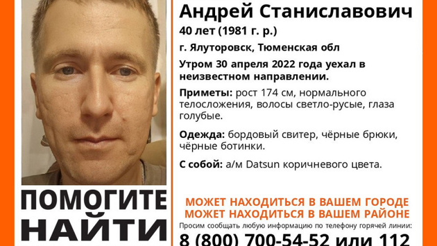 «Молоков Андрей Станиславович 1981 года рождения утром 30 апреля 2022 года уехал в неизвестном направлении. С собой автомобиль Datsun коричневого цвета», — говорится в сообщении.