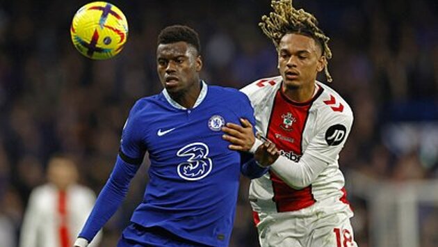 Игроки «Челси» Михаил Мудрик и Жоау Феликс перепасовывались в то время, как капитану синих Сесару Аспиликуэте оказывалась медицинская помощь после полученной травмы во время матча английской Премьер-лиги с «Саутгемптоном».
