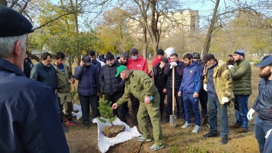 В парке Махачкалы высадили 58 сосен в память об Абдулманапе Нурмагомедове