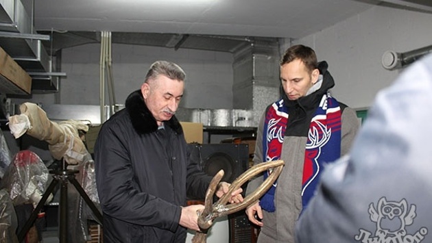 Пусть эти рога, которые Тор до недавнего времени с гордостью носил, помогут нашей команде в борьбе с соперником и защитят наше «Торпедо» от опасных атак на льду, — сказал директор зоопарка «Лимпопо» Владимир Герасичкин, вручая гостю подарок.