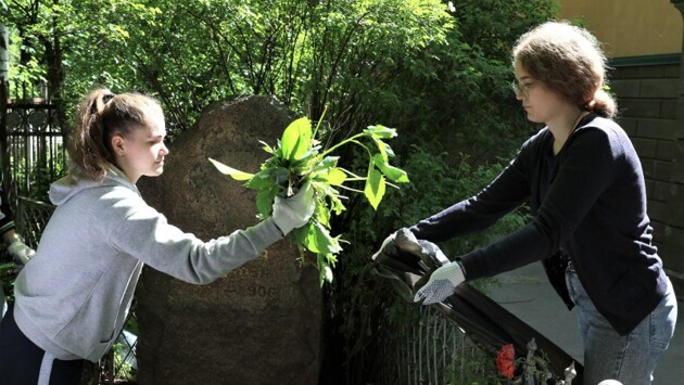 Молодежная палата и «Волонтеры Победы» провели акцию по благоустройству захоронений на Бугровском кладбище