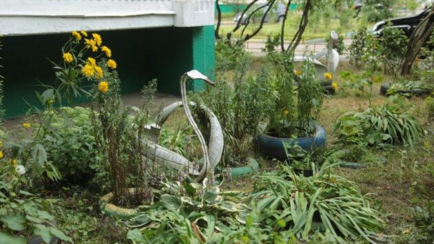 Этим летом в России ужесточили наказание за украшение дворов или дач клумбами и скульптурами из отработанных покрышек — они приравнены к опасным отходам. В Северном округе клумб и скульптур из покрышек немного. Несколько нашлись у многоэтажки 46, корп. 3, на Фестивальной улице. Здесь стоят два резиновых лебедя и клумбы из шин. Жительница дома Галина Виноградова рассказала, что большую часть клумб давным-давно сделали соседи с первого этажа. Несколько лет назад эти люди съехали. Мужчина, который смастерил лебедей, живет здесь. Правда, сейчас он в длительном отъезде. «Мне эти покрышки не мешают, – говорит Галина, – Если их покрасить, будет красиво. Но, раз их запрещают, то можно заменить их чем-нибудь». Сообщаем, что покрышки во дворе на Фестивальной уберут в ближайшее время. Вместо шин сотрудники управляющей компании могут высадить однолетние цветы. Избавиться от шин во дворе можно и самому, либо отвезя их в специальные пункты приема, либо оставив на ближайшей контейнерной площадке. Когда мусор будут вывозить, резину тоже заберут и отправят на переработку.
