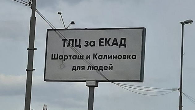 Девелопера заподозрили в том, что он поддерживает протест против строительства торгово-логистического центра «Уральский» в поселке Калиновском (северный берег Шарташа). На эту мысль власти натолкнули два обстоятельства. Первое — размещение (за деньги) на Блюхеровском мосту баннера «ТЛЦ за ЕКАД. Шарташ и Калиновка для людей». Его быстро сняли.