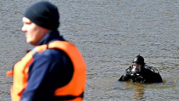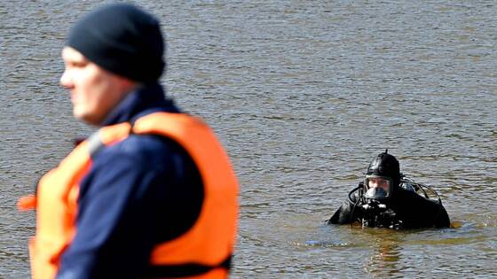 Тем временем спасатель-водолаз Игорь Головин входит в воду и погружается. Его задача — обследовать двадцатиметровый участок дна вдоль берега. Спустя полчаса водолаз всплывает и выходит на сушу.