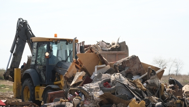 Среди россыпи проржавевших батареек пытаются прорасти тюльпаны. Рядом посадка фруктовых деревьев, готовых вот-вот зацвести нежным цветом. Эта весенняя картина плохо сочетается с большегрузами, которые увозят тонны мусора. Увозят, впрочем, не все – легкий пластик по степи разносит ветер.