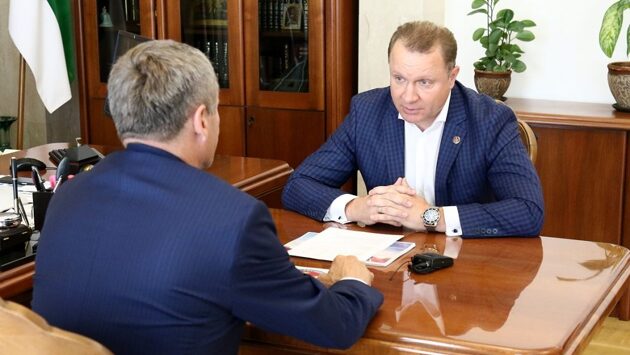 О достижениях и планах Курганского государственного университета шла речь на рабочей встрече Губернатора Курганской области Алексея Кокорина и исполняющего обязанности ректора университета Константина Прокофьева. Губернатор был проинформирован о результатах приема абитуриентов. Как ранее рассказывало ИА «Уральский меридиан», в этом году в приемную комиссию университета поступило 3566 заявлений, 8 августа приказом ректора 589 абитуриентов зачислены на бюджетные места по очным программам бакалавриата и специалитета. Всего, в этом году в университету Министерством образования и науки РФ выделено 713 бюджетных мест, что на 49 больше, чем в предшествующем году. На 2019 год одобрена заявка на 725 мест, прирост составит 12 человек, принятых на бюджетные места. Как рассказал Константин Прокофьев, самый большой конкурс на направления «Юриспруденция» — 3,3 человека на место, «Дизайн» — 3 человека на место, «Педагогическое образование» — 2,2, «Журналистика» — 2,1 и «Экономика» — 2. Фото пресс-службы Губернатора Курганской области