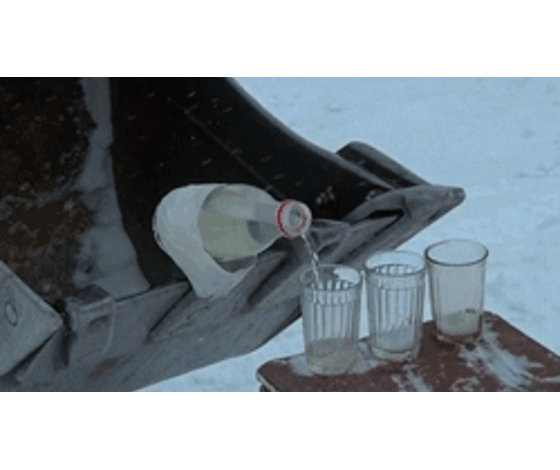 Наливай: студенты Златоуста с помощью ковша эскаватора разлили воду в стаканы