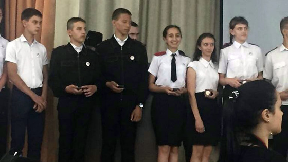 На торжественном мероприятии, состоявшемся в столице Кубани, чествовали лучших учеников из классов казачьей направленности. Нагрудные знаки «Отличник казачьей учёбы» получили наши ребята: Дарья Лившина и Дмитрий Пугачев, ученики школы №5 из ст. Ирклиевской; Маргарита Бояркова и Нина Карагозян — девочки из школы №18, ст. Новомалороссийской. Награды ребятам вручил атаман казачьего войска, генерал Николай Долуда.