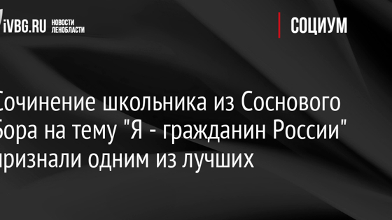 Сочинение школьника из Соснового Бора на тему "Я - гражданин России" признали одним из лучших