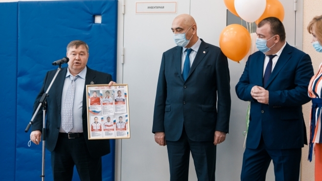 После торжественной церемонии открытия зала школьникам устроили показательные выступления звезд Клуба самбо УГМК – чемпионов мира Владимира Балыкова и Станислава Скрябина, а также неоднократных победителей и призеров чемпионатов мира и Европы братьев Уали и Али Куржевых.