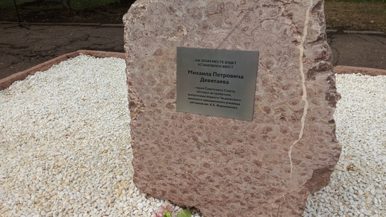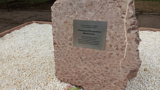 Закладной камень на месте, где появится мемориал летчику-асу Михаилу Девятаеву, установили 22 июля в сквере у школы №39.
