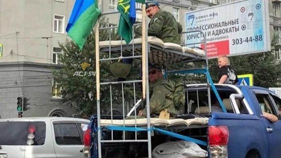 Десантники катаются по Новосибирску на двухъярусной шконке