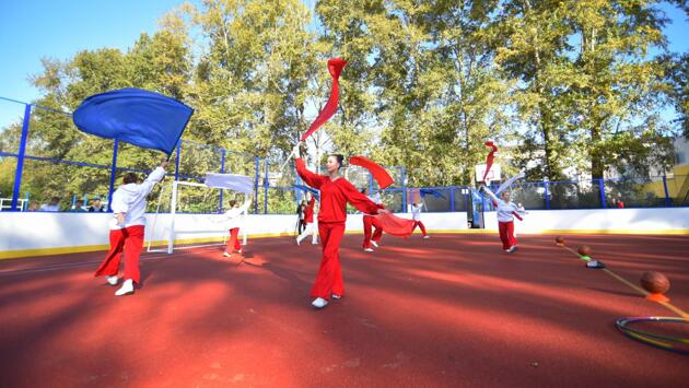 Первые уроки физкультуры уже прошли на новом физкультурном комплексе. По словам педагогов, площадка многофункциональна: помимо проведения игр, здесь можно разминаться, выполнять упражнения, отрабатывать технику метания теннисными мячами и другое.