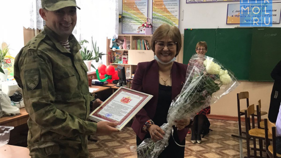 Военнослужащие кизлярского отдельного батальона оперативного назначения Северо-Кавказского округа войск национальной гвардии поздравили учителей подшефных образовательных учреждений с Днем учителя. Военнослужащие вручили педагогам памятные подарки, цветы, грамоты и выразили им благодарность за их нелегкий труд. «Дорогие учителя, вы даете детям не только знания, но и помогаете им расти честными и трудолюбивыми людьми, любящими свою Родину и почитающими старших. Родители смело доверяют вам своих детей, потому что знают, что они в надежных руках. Спасибо вам за профессионализм, терпение, доброту и заботу о детях. Желаем вам крепкого здоровья и благодарных учеников», – сказал офицер группы по работе с личным составом кизлярского отдельного батальона оперативного назначения капитан Константин Юдин.