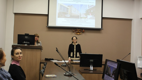 В своем докладе зав. кафедрой архитектурного проектирования, д-р архитектуры, профессор, академик РААСН Анна Лазаревна Гельфонд рассказала об истории архитектурного образования в ГИСИ-ННГАСУ: